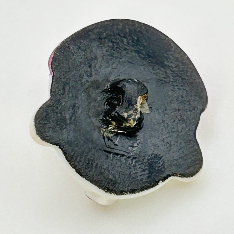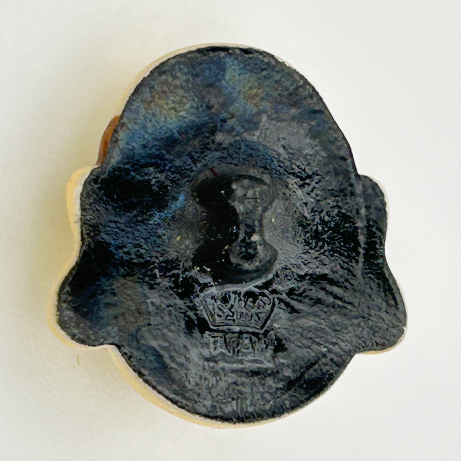 El acabado vítreo negro o azul oscuro y la presencia del logotipo en relieve bajo el esmalte confirman la fabricación en ese rango de fechas. Los tamaños oscilan generalmente entre 1,5 cm y 2,5 cm, lo que los convierte en piezas delicadas y perfectas tanto para decoración en prendas como para coleccionismo.