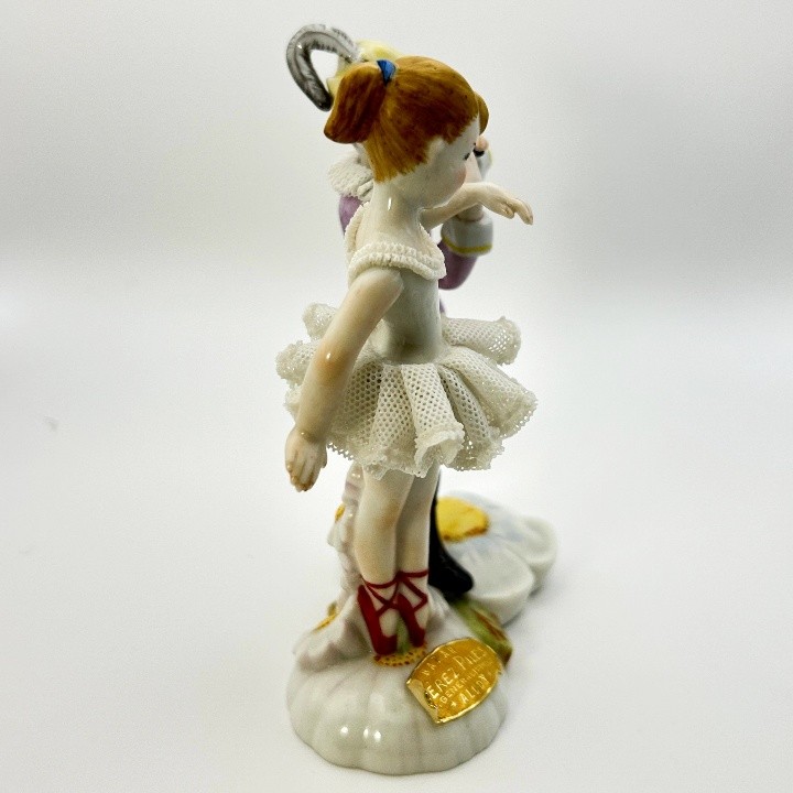 La base floral y los tonos pastel, junto con los detalles minuciosos, reflejan la inspiración Rococó que marcó las primeras décadas de la marca. Destacan la belleza de sus rostros y la finura del tul, lo que convierte a esta pieza en una muestra perfecta del arte y la maestría técnica de Lladró.