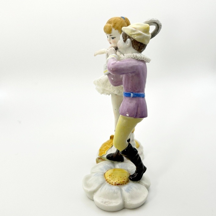 Esta figura de porcelana Lladró es una pieza decorativa perfecta para exponer en espacios que busquen un toque romántico y elegante. Ideal para exhibir en una vitrina o en un estante, resalta por su delicadeza y rareza. Su escena de danza y los detalles florales la hacen perfecta para añadir un aire vintage a tu hogar.